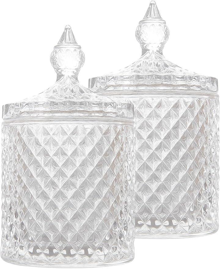「商品内容」セット数:2個 素材:ガラス サイズ:直径/約8.3cm 全高/約14cm 高さ/約8.3cm(蓋を含まない) 容量/約300ml 重さ/約450g