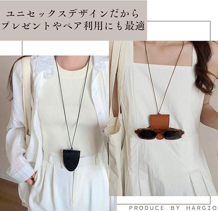 オシャレで便利なメガネホルダーネックレスです。レザー調素材のトップで落ち着いた印象のネックレスです。