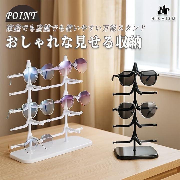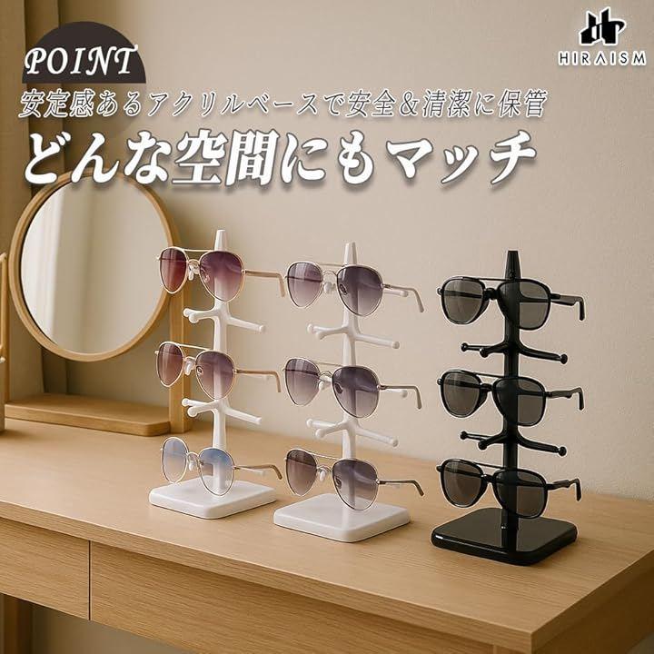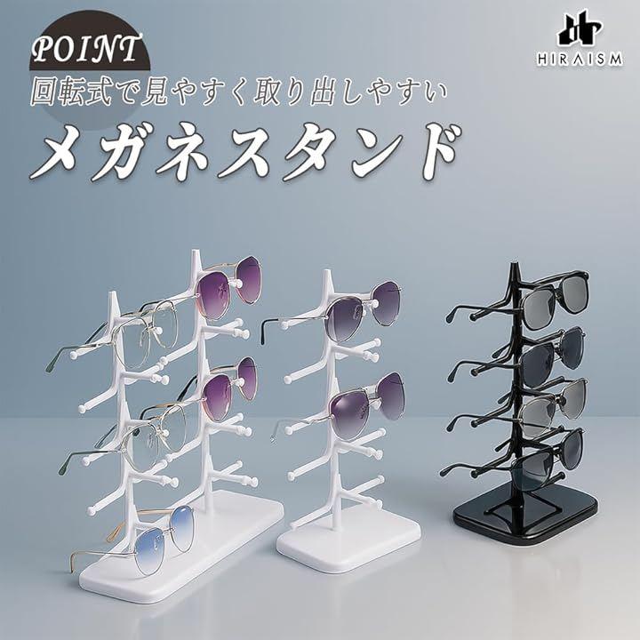「省スペースで魅せる回転式メガネスタンド」360°回転する支柱で、どの方向からでも眼鏡やサングラスをスムーズに取り出せます。