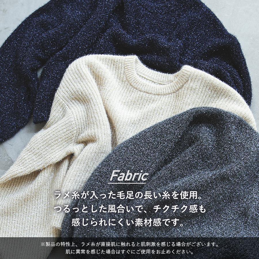 ラメが煌めくシーズナブルなニットプルオーバー。