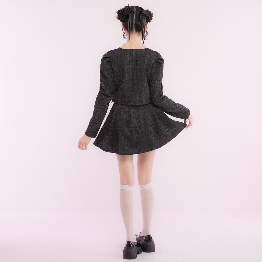 【コーディネート】このセットアップ1つで映えコーデが完成します!ハイソックスやニーハイソックス×厚底パンプスを合わせた大人量産型コーデや、ロングブーツを合わせた韓国っぽコーデも♪それぞれ単品使いもできるので、ヘビロテ間違いなしのアイテムです!