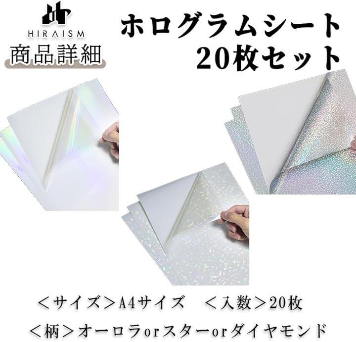 「商品内容」ホログラムシート20枚セット <サイズ>A4サイズ <入数>20枚 <柄>オーロラorスターorダイヤモンド