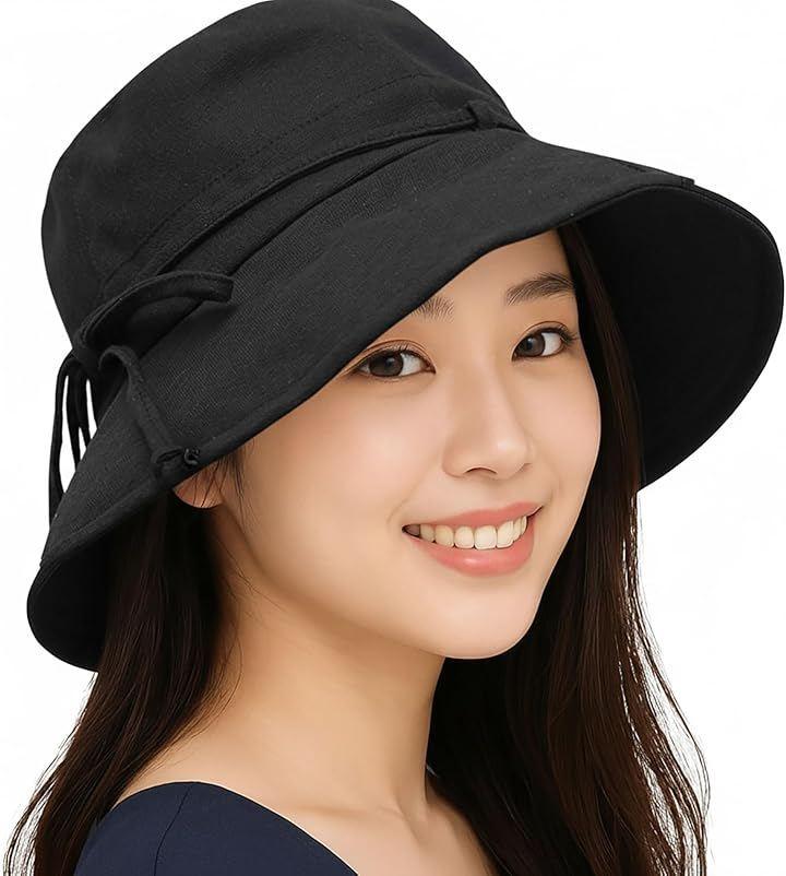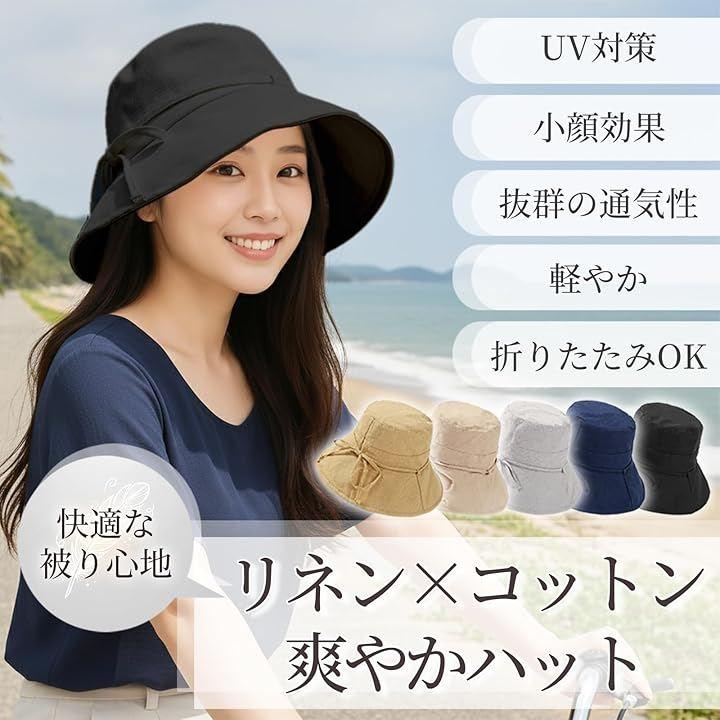 v「上品なコットンxリネン素材・心地よい柔らかさ」 UVカット帽子には通気性と吸汗性に優れたコットン素材を使用しており、微細な繊維が汗を素早く吸収し、こもった熱を外に逃がすことで、真夏でも蒸れにくく快適な被り心地が続きます。