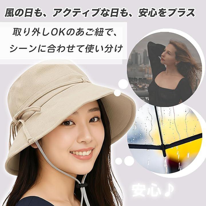 このUVカット帽子は、風の強い日や自転車に乗る時でも、サイズを調整すれば飛ばされる心配がなく、安心して着用できます。