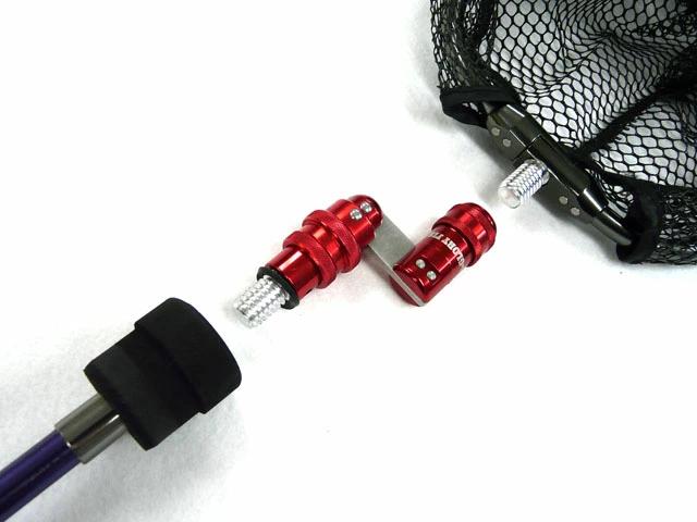 枠とシャフトの間に装着することで、ランディングネットの枠部分を折りたたみ可能にするアイテム。