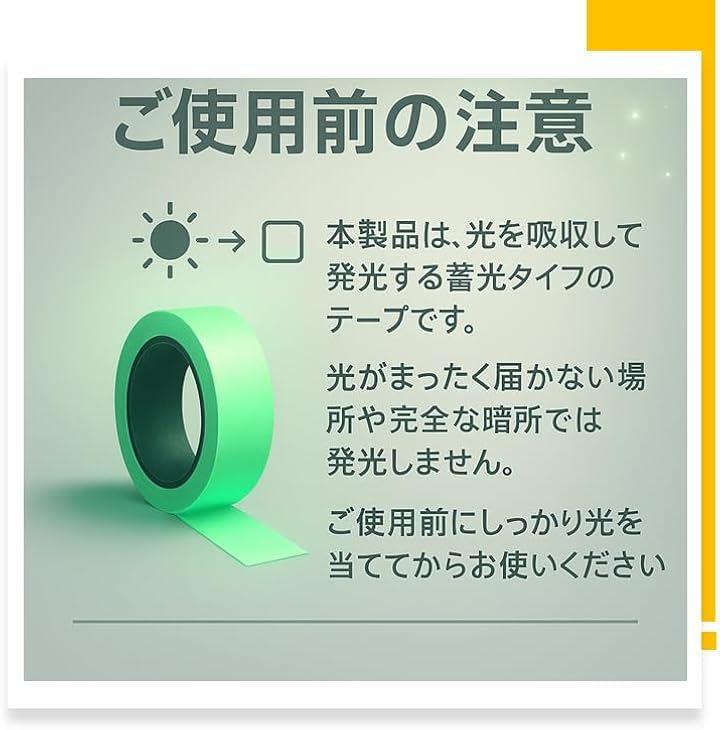 「ご使用前の注意」 本製品は 光を吸収して発光する蓄光タイプのテープ です。