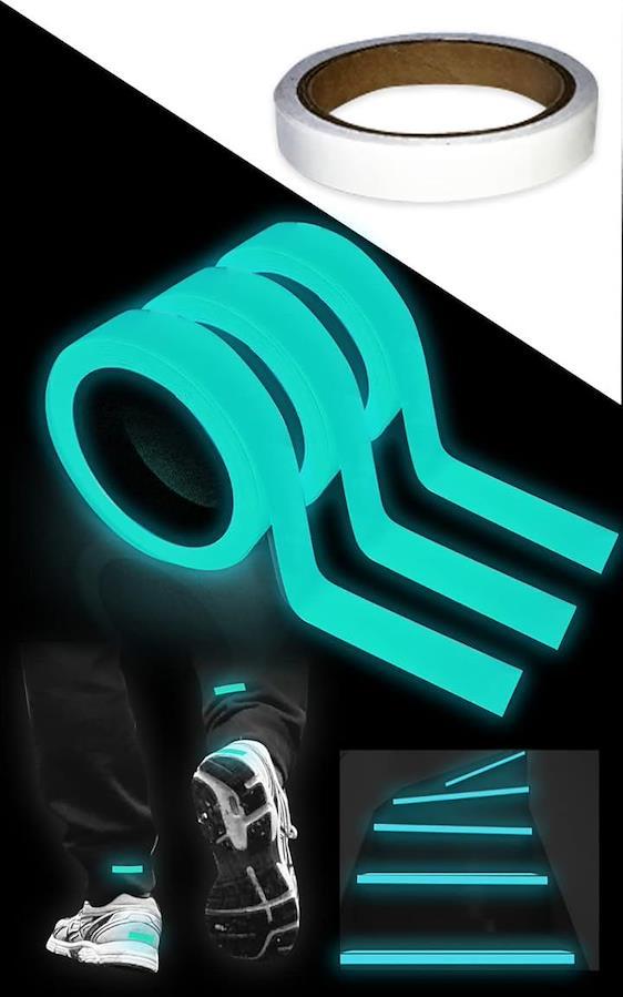 暗闇でしっかり発光する蓄光テープ。 光を吸収してグリーン・ブルー・オレンジに発光し、夜間の安全対策に便利です。