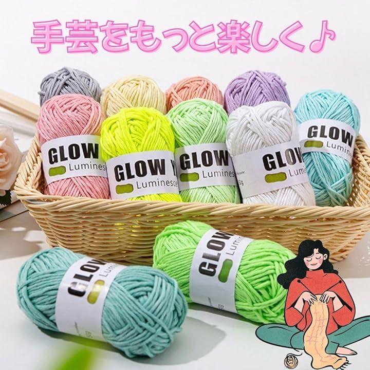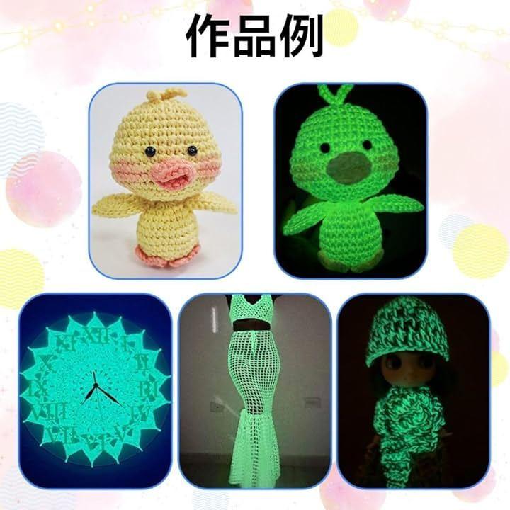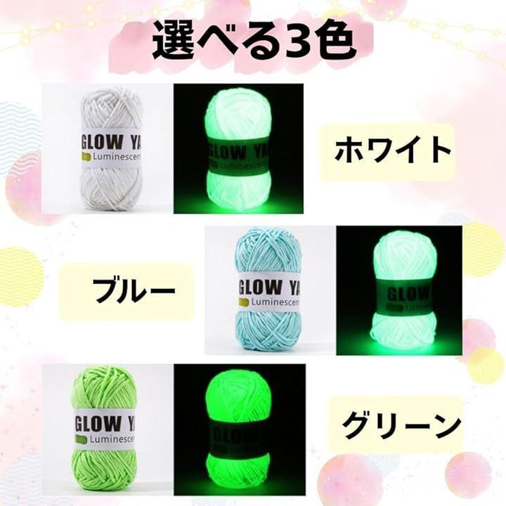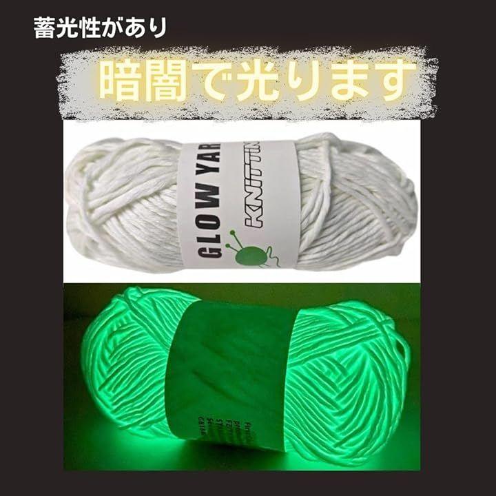 グロウヤーンは、自然光や室内照明を吸収し、暗所でほのかに発光する蓄光繊維を採用しています。