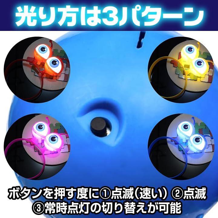 「電池式 光る目玉」 光り方は(1)点滅(速い) (2)点滅 (3)常時点灯の全3パターンあります。