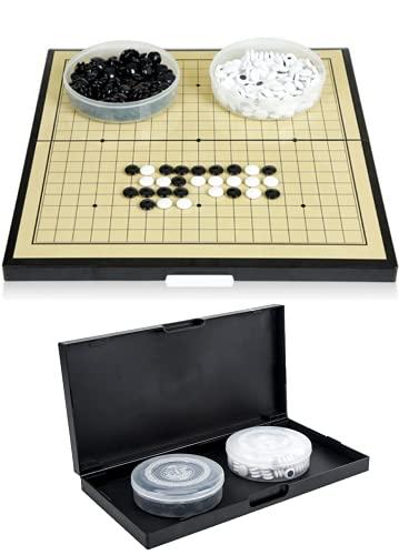 【19路盤囲碁セット】サイズ:37×37×2.5㎝ / 折畳時:37×18.5×4.8㎝ 本格派正式対局囲碁セット 碁石の背面にはマグネット付き・盤面防水仕様 推奨年齢:6歳以上 【本格派正式対局仕様】仲間と一緒に対局・詰碁や練習用にも。家族と一緒に。コミュニケーション ツールとして。ルールは簡単5つだけ。 【囲碁は右脳ゲーム】左脳と比べ成長し続ける右脳。子供から始めても良し、いつ始めても良し。始めた時から成長が始まります。 【右脳の能力】図形や形・空間などを感覚的に認識し大局的視野の判断力を育みます。右脳を刺激することで集中力が付き、創造力を育み、発想を豊かにしてくれます。また、ストレス解消・ボケ防止・脳卒中・認知症予防やリハビリにも効果あり。 【学校教育と囲碁】小中学校生に3か月間・週1回の囲碁教室で、認知能力の向上が認められています。思考力・短期記憶力・総合的な作業力。幅広く前頭前野をはじめとする能力がより発達した結果が得られています。詳しくは日本棋院HPをご参照ください。囲碁は学校教育にも組み込まれ、現在全国小中学200校・2万人が毎年授業で学んでいます。
