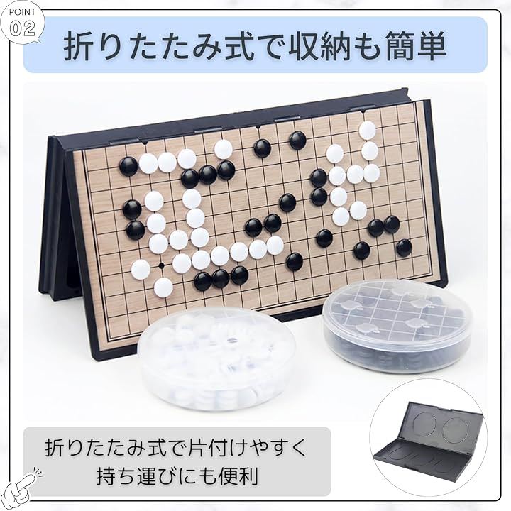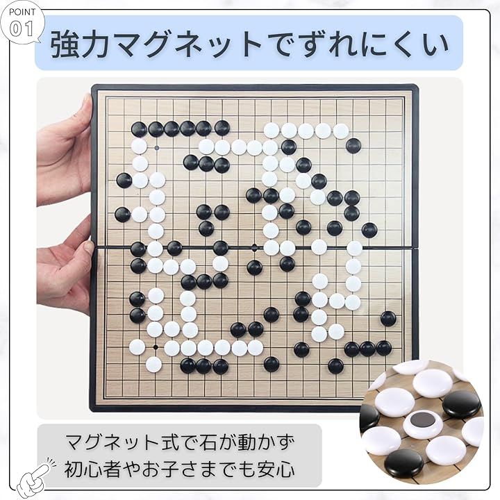 碁石がしっかり吸着するため、うっかり手やテーブルが動いても石がずれにくく、初心者やお子さまでも安心して対局を楽しめます。