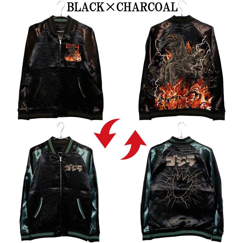 Godzilla 1984 Embroidered Reversible Sukajan (GZL-2501) BLACK x CHARCOAL XXXL (4L)