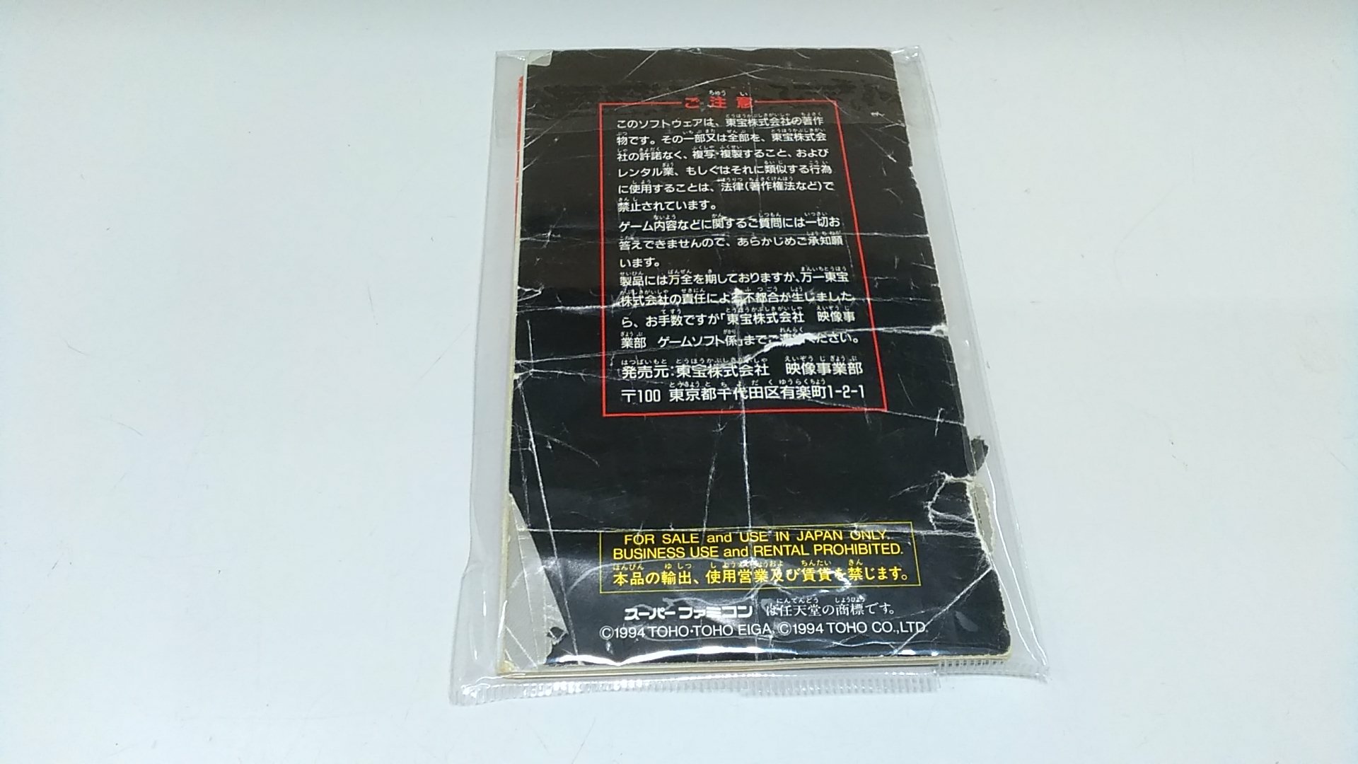 Godzilla: Great Monster Battle SHVC-AG2J-JPN TOHO Super Famicom Software