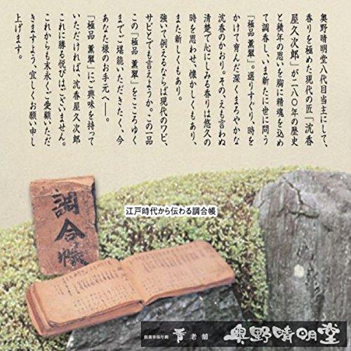 通常1-5営業日で発送:奥野晴明堂八代目当主にして、香りを極めた現代の匠「沈香屋久次郎」が280年の歴史と積年の思いを胸に精魂を込めて復刻し、いま新たに世に問う「極品 薫翠」。