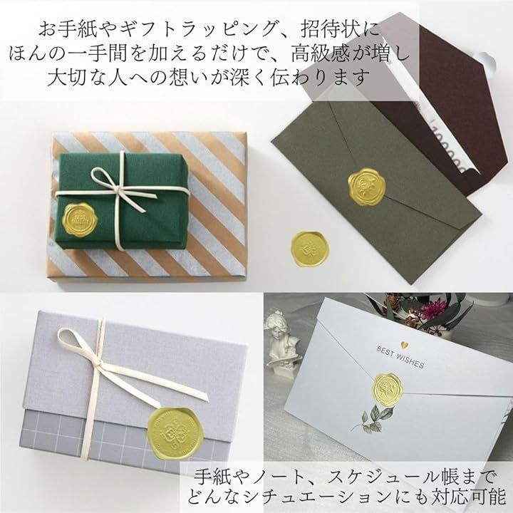 「エレガントな雰囲気を手軽に」結婚式の招待状や記念日のメッセージ、お祝いのギフトラッピングから、日常の手紙やスケジュール帳、ノートまで、どんなシーンでも活躍する金色のシーリングワックスシール。