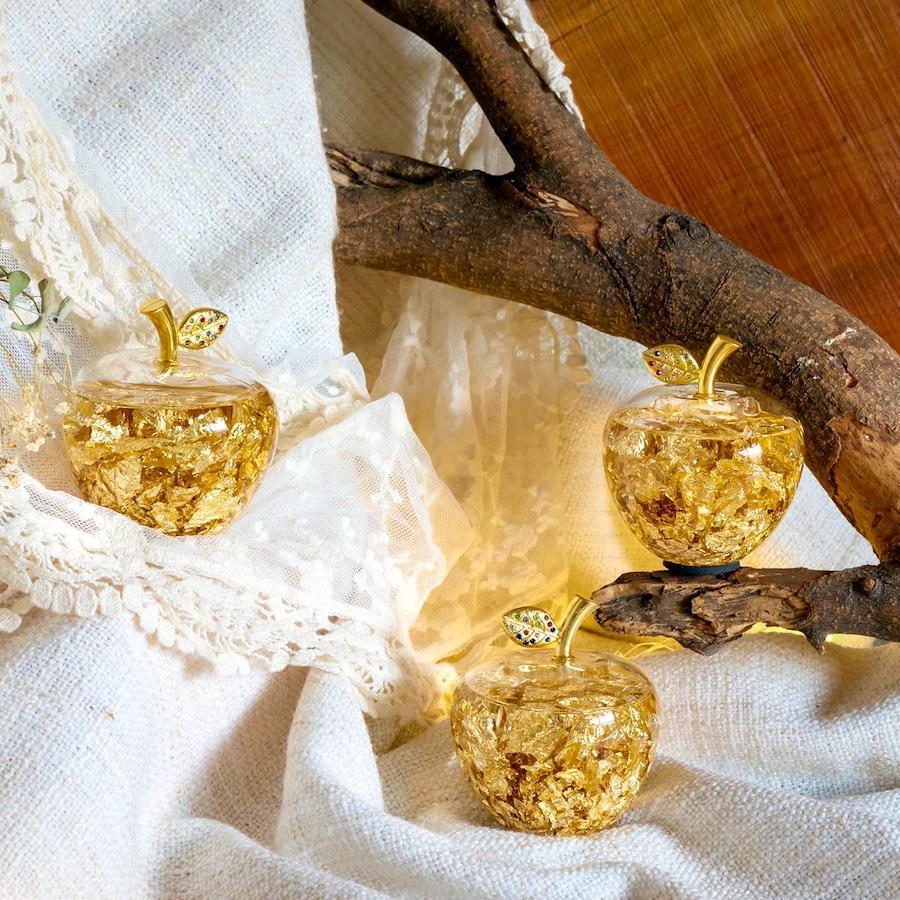 大人気商品!オイルの中に金箔を散りばめた高級感のある作品です。 黄金の林檎で金運もアップです!
