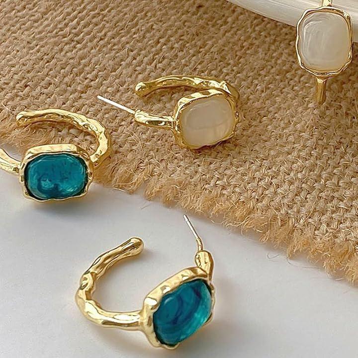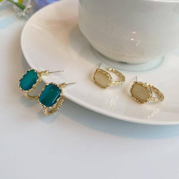 「サイズ」ピアス内径:約1.7cm / グリーン部分(ホワイト部分):1.1cmx0.8cm