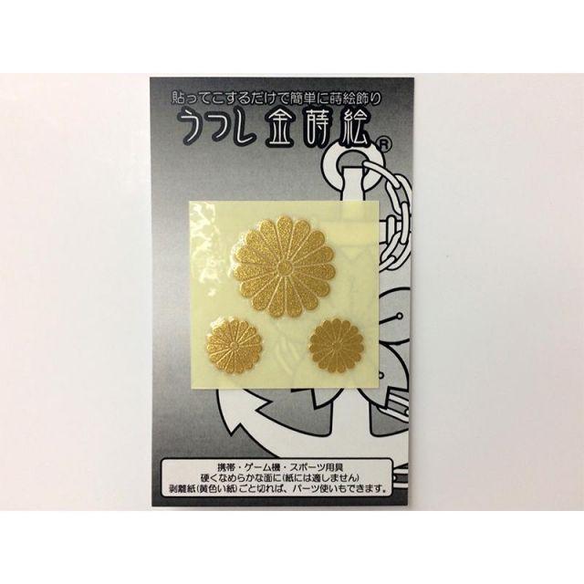 商品名:金蒔絵シール ( 菊花紋3点 ) 海上自衛隊グッズ 自衛隊グッズ うつし金蒔絵 菊《大きさ》菊花紋(大サイズ):直径約22mm菊花紋(小サイズ):直径約12mm携帯電話・ガラス・金属製品・漆器・陶器・パソコン・スポーツ用品等の装飾に。平らで硬質な物であれば簡単に貼り付けが可能です。