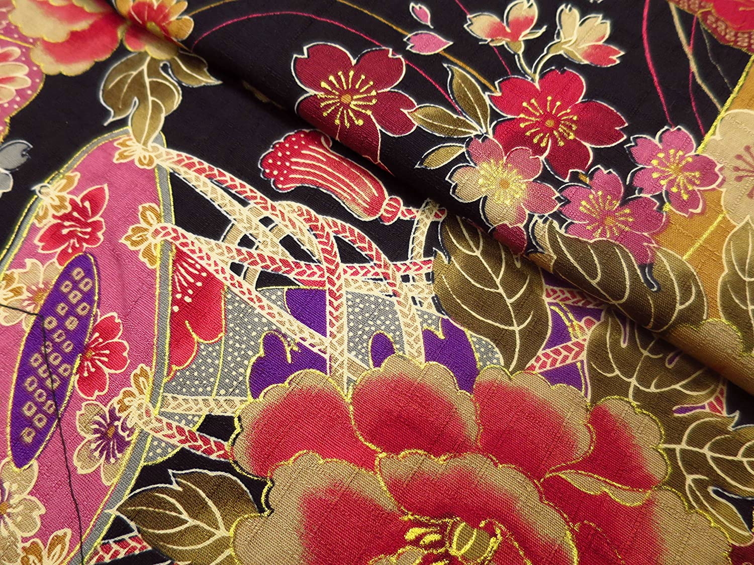 Gold-painted peony and cherry blossom (black and red) extra large size (LL) adult koiguchi shirt (sold separately)