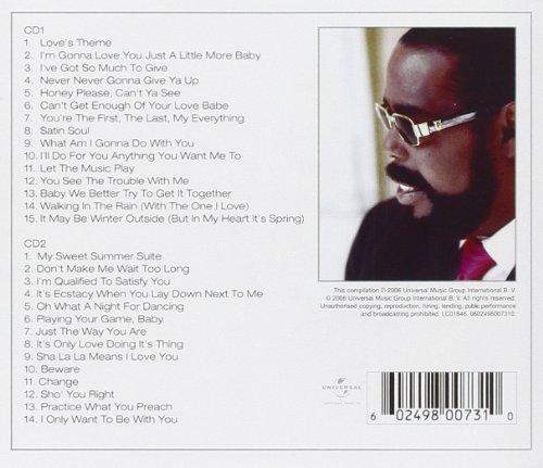 通常1-5営業日で発送【新品未開封品】Two CD digitally re-mastered collection by the undisputed King of romantic, sexy Soul and R&B. Features his hit recordings for A&M, including the instrumental hits written and produced for his studio band, Love Unlimited Orchestra. Contains album versions plus rare single versions and radio edits. 29 tracks total including 'Never Never Gonna Give Ya Up', 'Can't Get Enough of Your Love Babe', 'Love's Theme', You're the First, the Last, My Everything', 'Let the Music Play', 'Satin Soul', 'What Am I Gonna Dow with You' and many more. Universal. 2006.