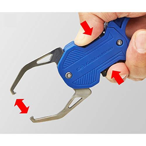 小型回遊魚やロックフィッシュなどのライトゲームフィッシュ専用コンパクトフィッシュグリップ「GMグリップミニ LT」は、簡単操作で魚の口をしっかりホールドします。ボディ素材には軽量で錆びない強化プラスチック(GFRP)を採用。さらに、携帯に便利なカラビナを本体と一体化することで、様々な場所にブラブラ感を抑えスッキリ取り付けることができます。