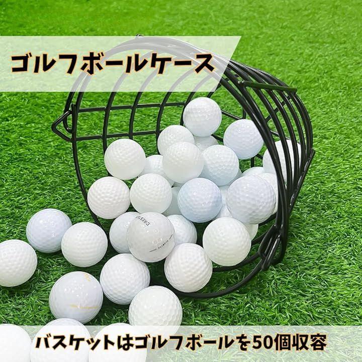 「ゴルフボール収納ケース」バスケットはゴルフボールを50個収容でき、ハンドル付きで持ちやすく便利です。
