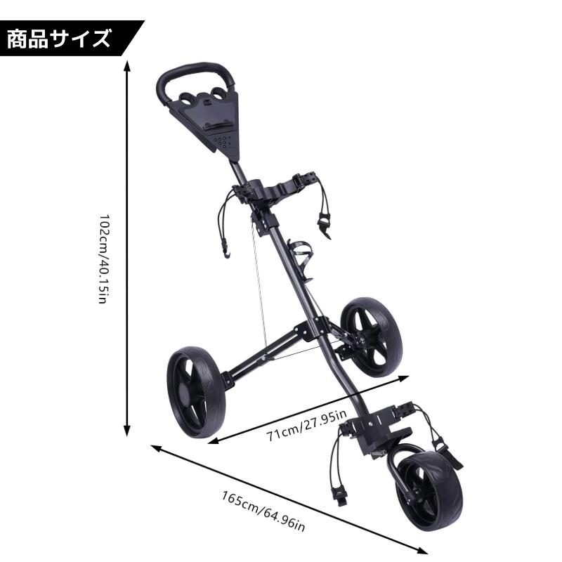 折りたたみ式の3輪ゴルフバッグキャリーは、軽量アルミフレームで扱いやすく、ラウンドや練習場の移動をスムーズにします。