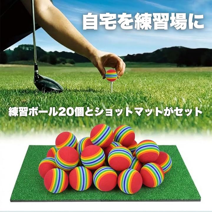 「自宅を練習場に」フルセットで即アプローチ上達 室内用ゴルフ練習ボール20個とショットマットがセットになった、コスパ抜群の練習器具です。