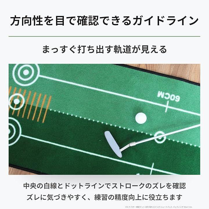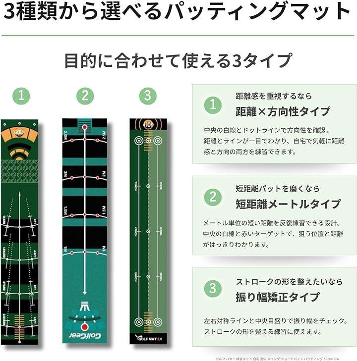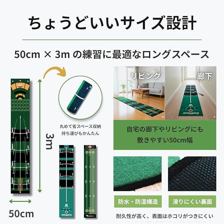 「選べる 3mの本格パッティング」 幅50cm、長さ3mの広々としたサイズで、自宅練習の質を向上させます。