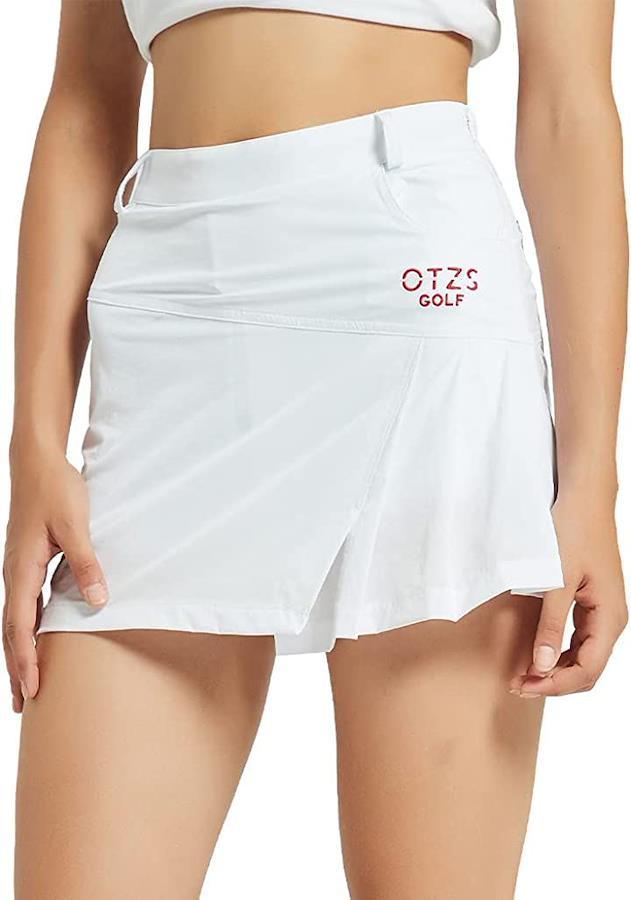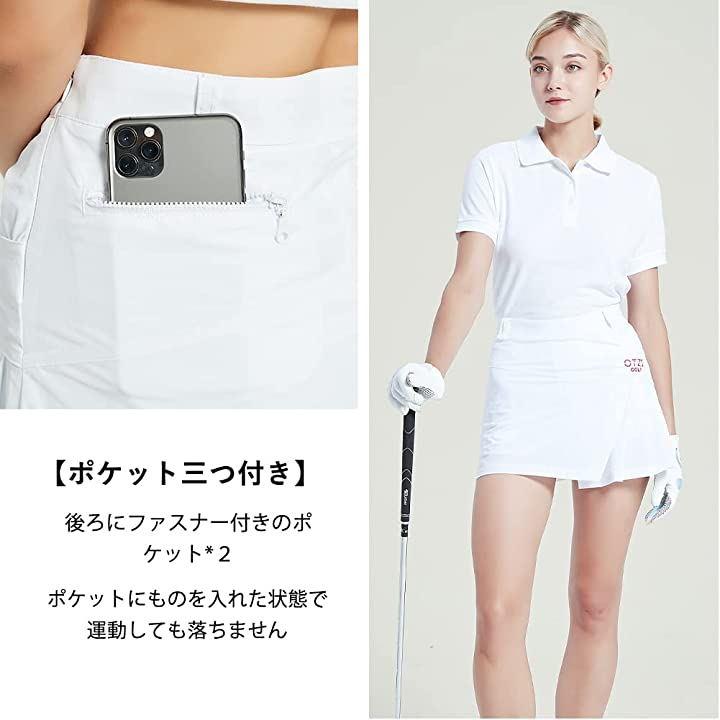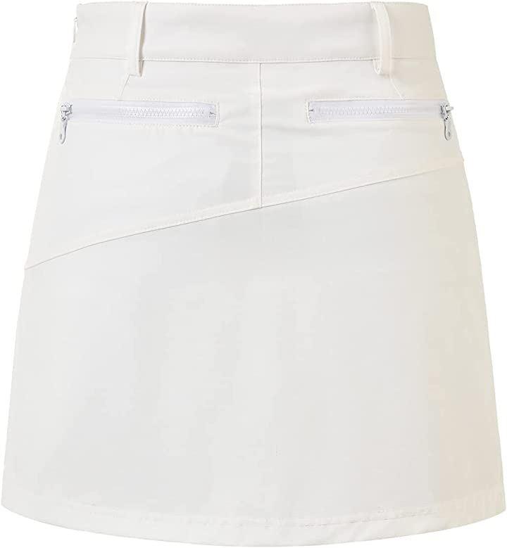 素材構成:90%ポリエステル,10%ポリウレタン速乾機能と涼しい肌触りが特徴のゴルフスカートスポーツシーンに最適な優れたストレッチ性の素材で適度なフィット感を実現しますメッシュインナーパンツ付きボールを入れるいポケットが3ヶ所と収納力も抜群、背面のファスナー付きポケットは貴重品を守ります