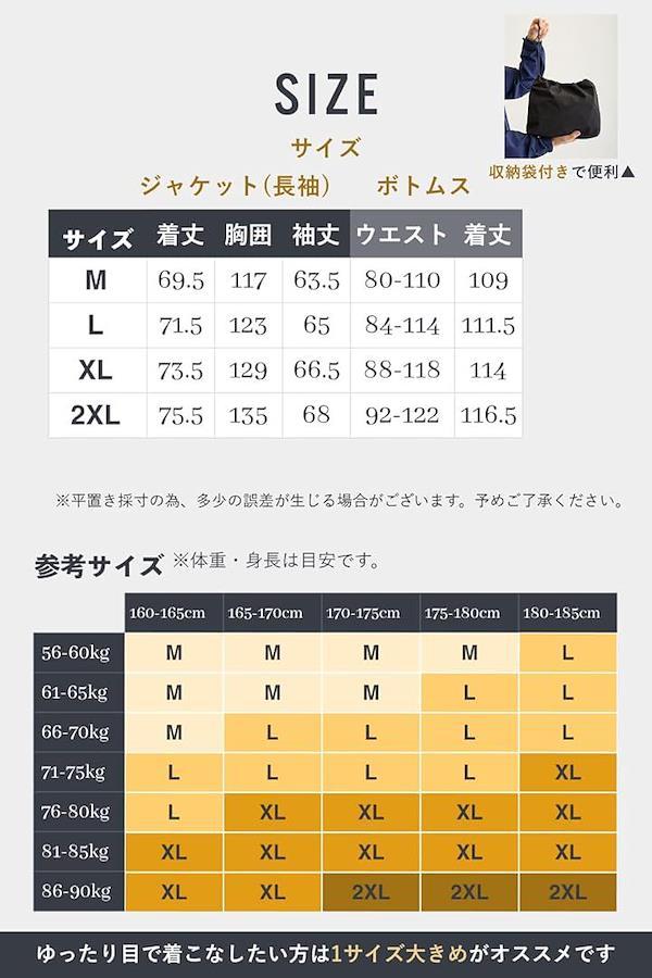 「重量」ジャケット約330g、パンツ約240g「メイン素材」 ポリエステル「利用シーン」ゴルフ 「機能」*防水/撥水加工(耐水圧20,000mm)、防風 「サイズ」 M~2XL <ジャケット> 着丈(背面) / 胸囲 / 袖丈 [M] : 69.5 / 117 / 63.5 [L] : 71.5 / 123 / 65 [XL] : 73.5 / 129 / 66.5 [2XL]: 75.5 / 135 / 68<パンツ> ウエスト / 着丈 [M] : 80‑110 / 109 [L] : 84‑114 / 111.5 [XL] : 88‑118 / 114 [2XL]: 92‑122 / 116.5