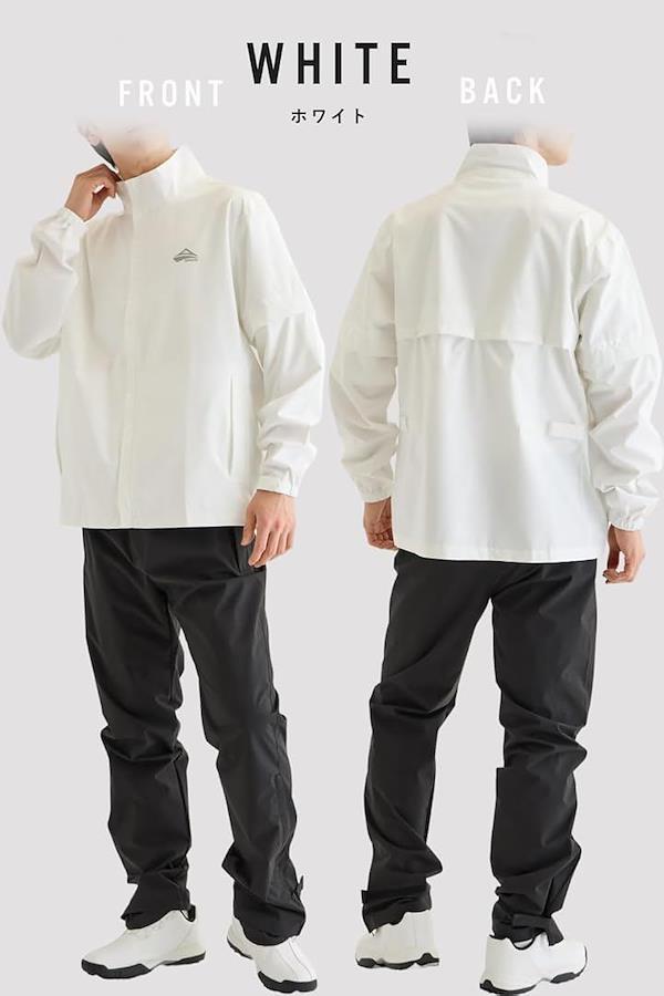 「重量」ジャケット約330g、パンツ約240g「メイン素材」 ポリエステル「利用シーン」ゴルフ 「機能」*防水/撥水加工(耐水圧20,000mm)、防風 「サイズ」 M~2XL <ジャケット> 着丈(背面) / 胸囲 / 袖丈 [M] : 69.5 / 117 / 63.5 [L] : 71.5 / 123 / 65 [XL] : 73.5 / 129 / 66.5 [2XL]: 75.5 / 135 / 68<パンツ> ウエスト / 着丈 [M] : 80‑110 / 109 [L] : 84‑114 / 111.5 [XL] : 88‑118 / 114 [2XL]: 92‑122 / 116.5