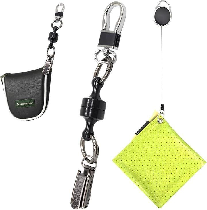 「商品内容」[2点セット] セット内容:レザー調ゴルフタオル(リールコード付)x1,パターカバー用クリップホルダー(マグネット式)x1 カラー:ブラック、イエロー、ピンク、ブルー、グリーン [単品]パターカバー用クリップホルダー(マグネット式)のみもお選びいただけます。