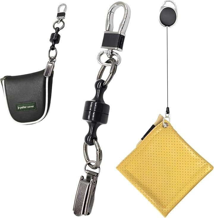 「ゴルフをより楽しく、スマートに。2つの必須アイテムセット」パターカバークリップホルダーと上質なフェイクレザーゴルフタオルが一つになったコンプリートセットです。