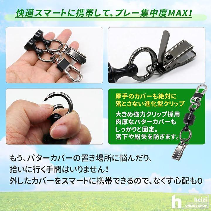 「厚手のカバーも絶対に落とさない進化型クリップ」パターカバーキャッチャーには大きめの強力クリップを採用し、肉厚なパターカバーもしっかりと固定。