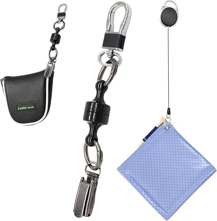 「ゴルフをより楽しく、スマートに。2つの必須アイテムセット」パターカバークリップホルダーと上質なフェイクレザーゴルフタオルが一つになったコンプリートセットです。