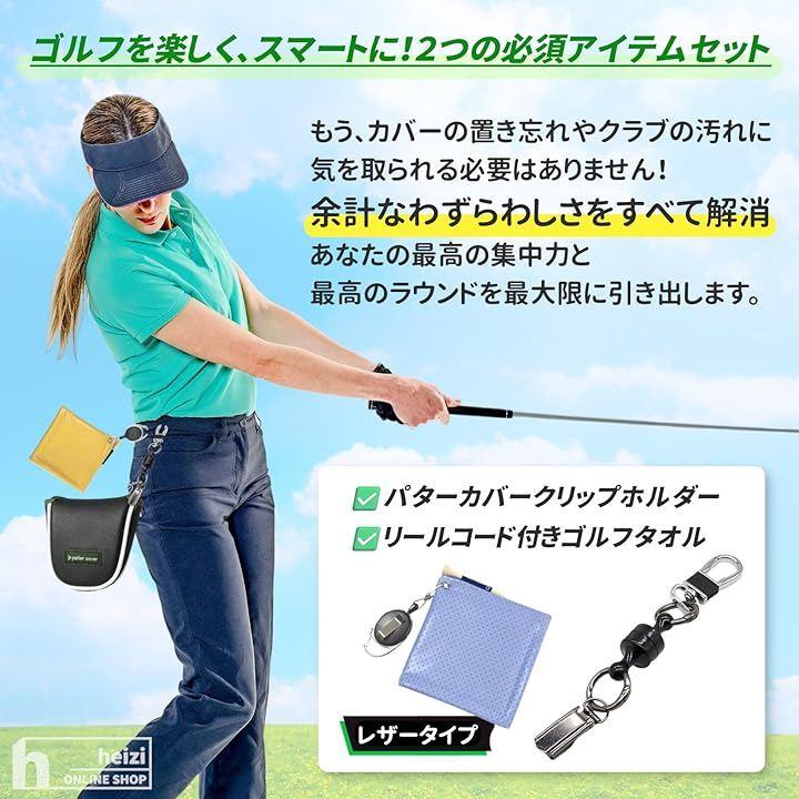 「商品内容」[2点セット] セット内容:レザー調ゴルフタオル(リールコード付)x1,パターカバー用クリップホルダー(マグネット式)x1 カラー:ブラック、イエロー、ピンク、ブルー、グリーン [単品]パターカバー用クリップホルダー(マグネット式)のみもお選びいただけます。
