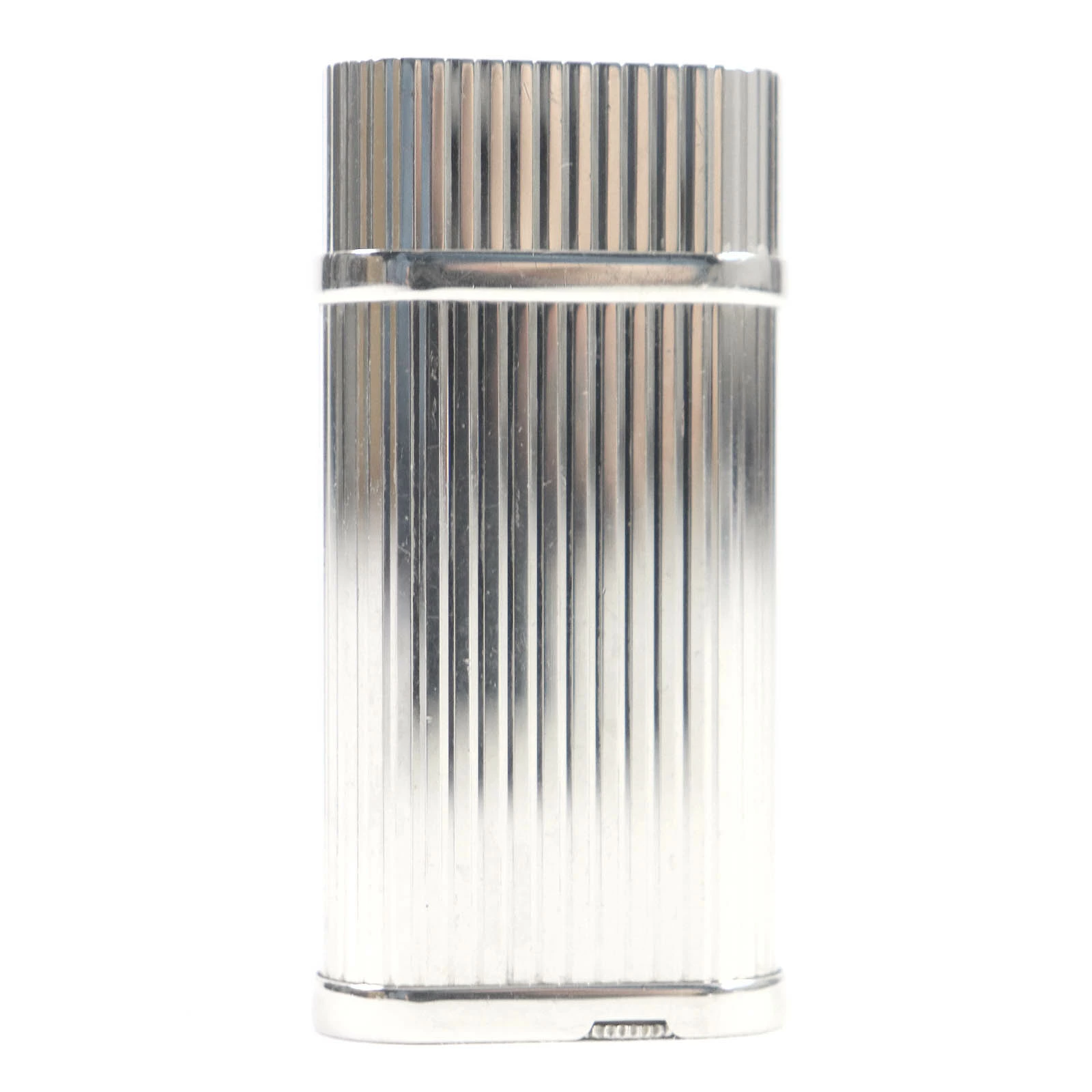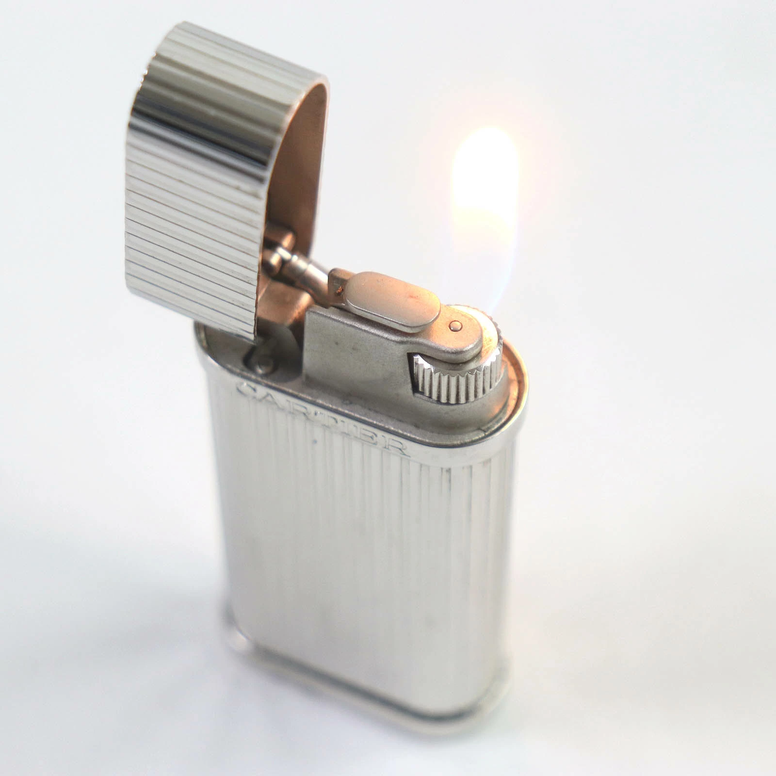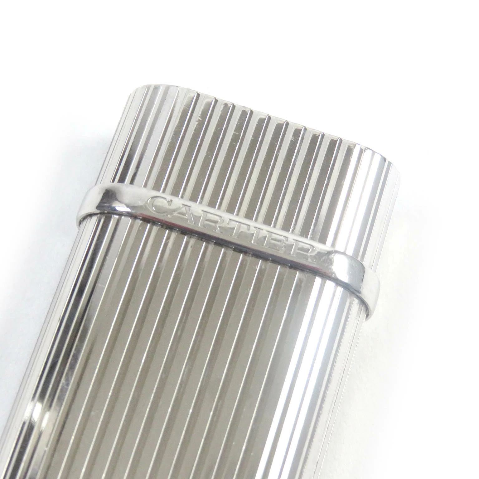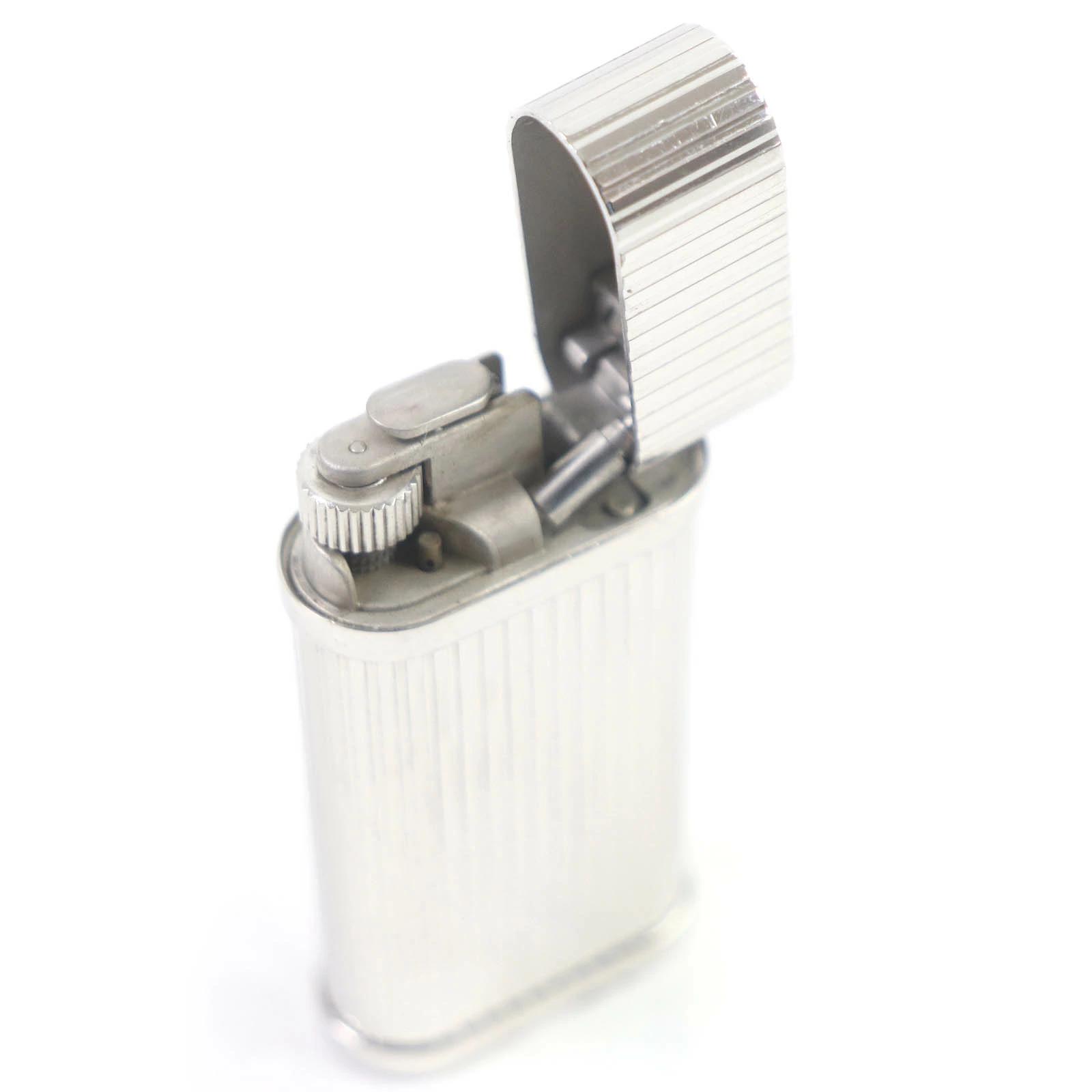 Good condition Cartier Godron striped oval roller smoking accessory gas lighter, silver, Swiss made, men's, ignition confirmed [pre-owned]