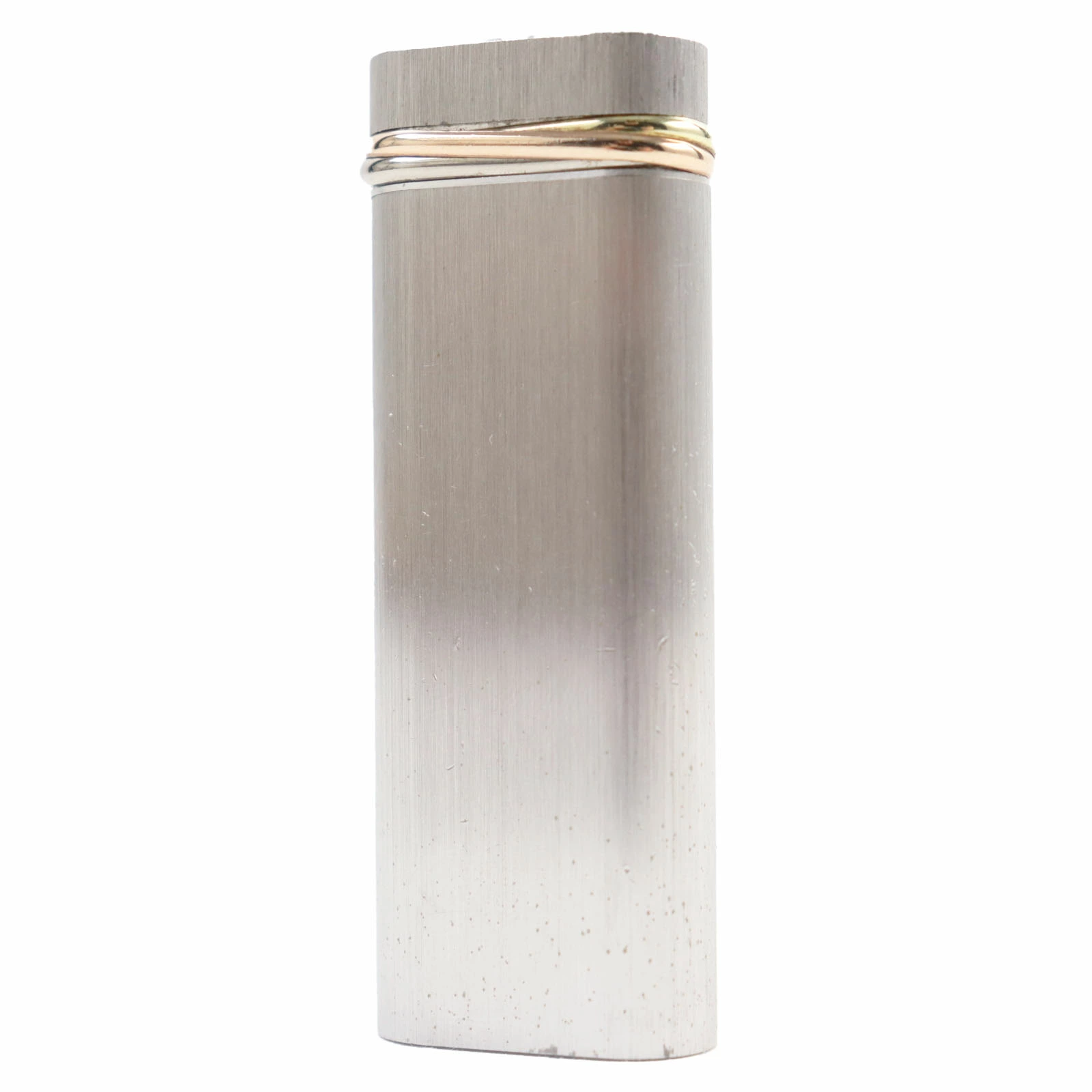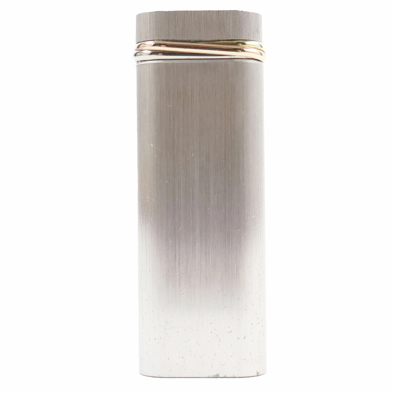 Good condition: Cartier Trinity Hairline Oval Roller Gas Lighter, Silver and Gold, Men's, with box, ignition confirmed. [Pre-owned]