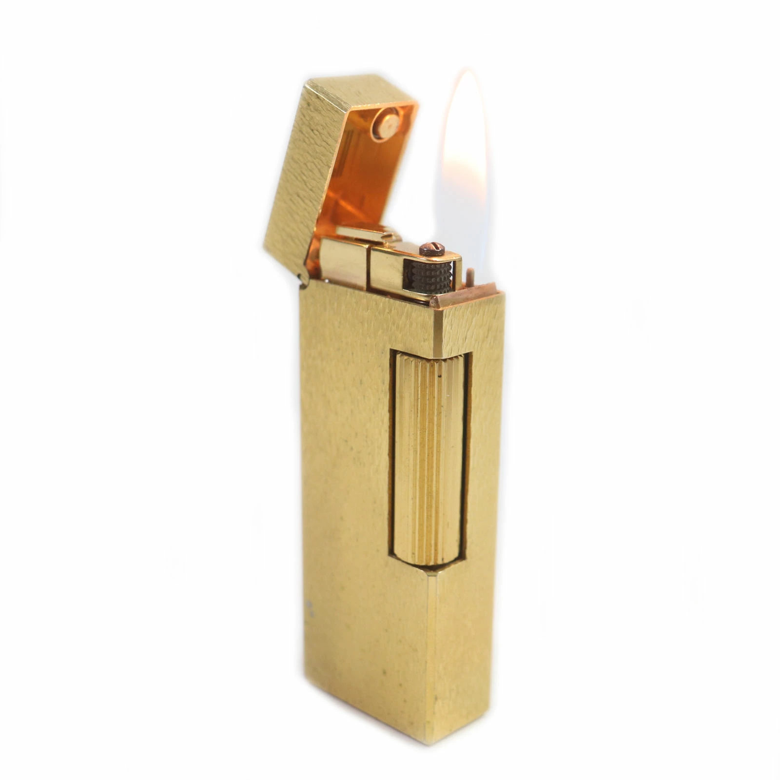 Good condition: Dunhill Square All-Over Print Roller Gas Lighter, Gold, Swiss Made, Men's, Ignition Verified [Pre-owned]