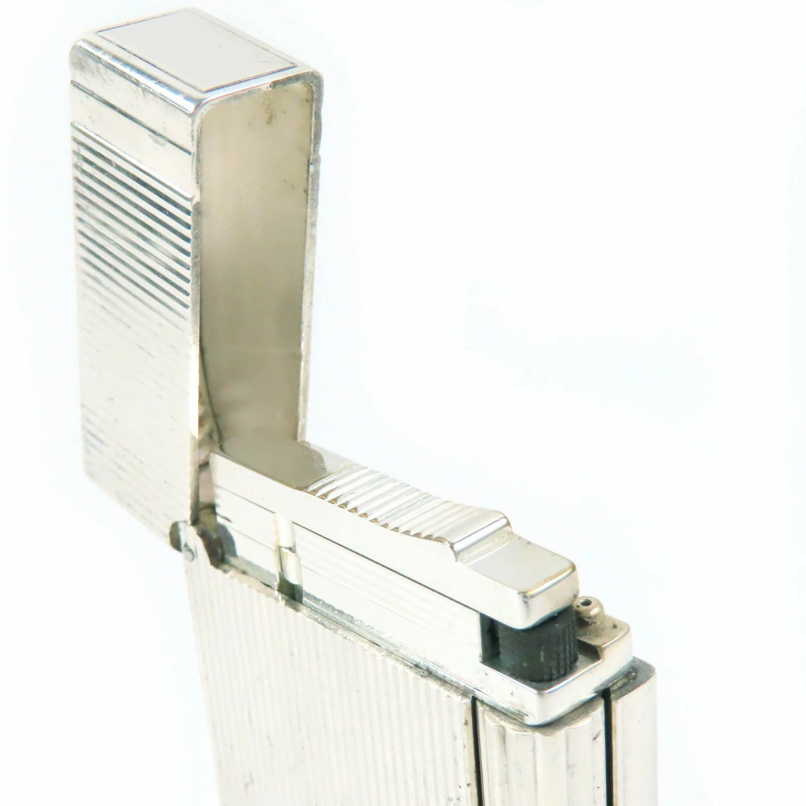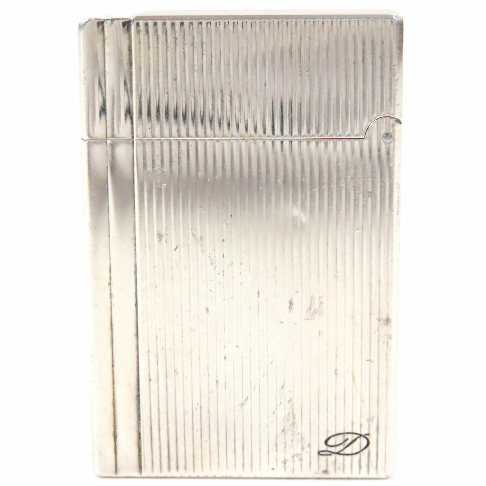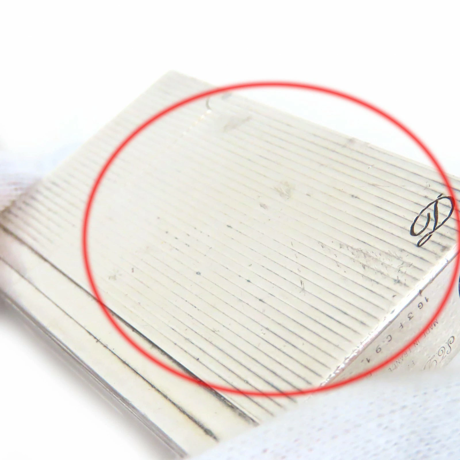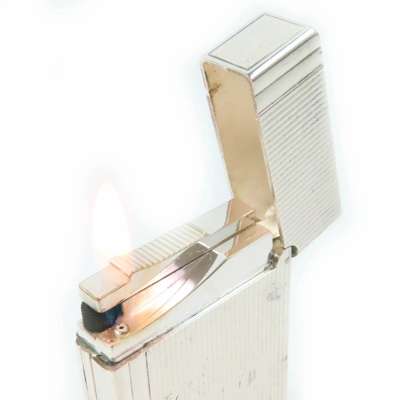 Good condition: Dupont Gatsby stripe logo engraved square roller gas lighter, silver, men's, ignition confirmed. [Pre-owned]
