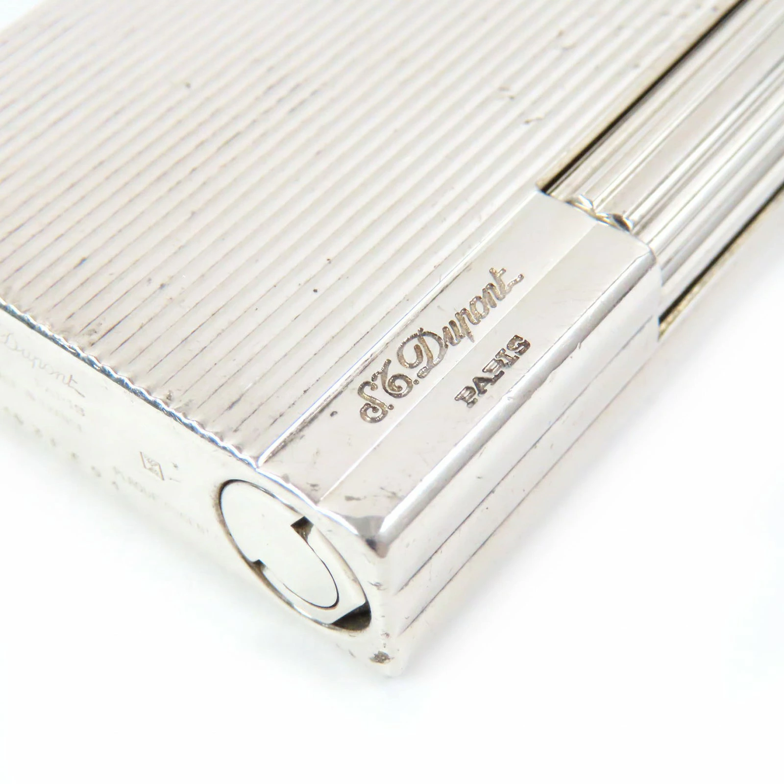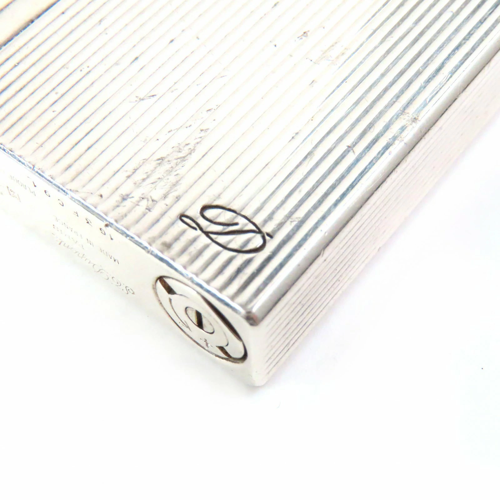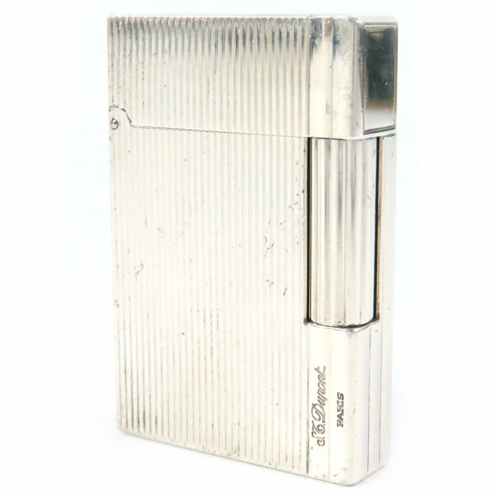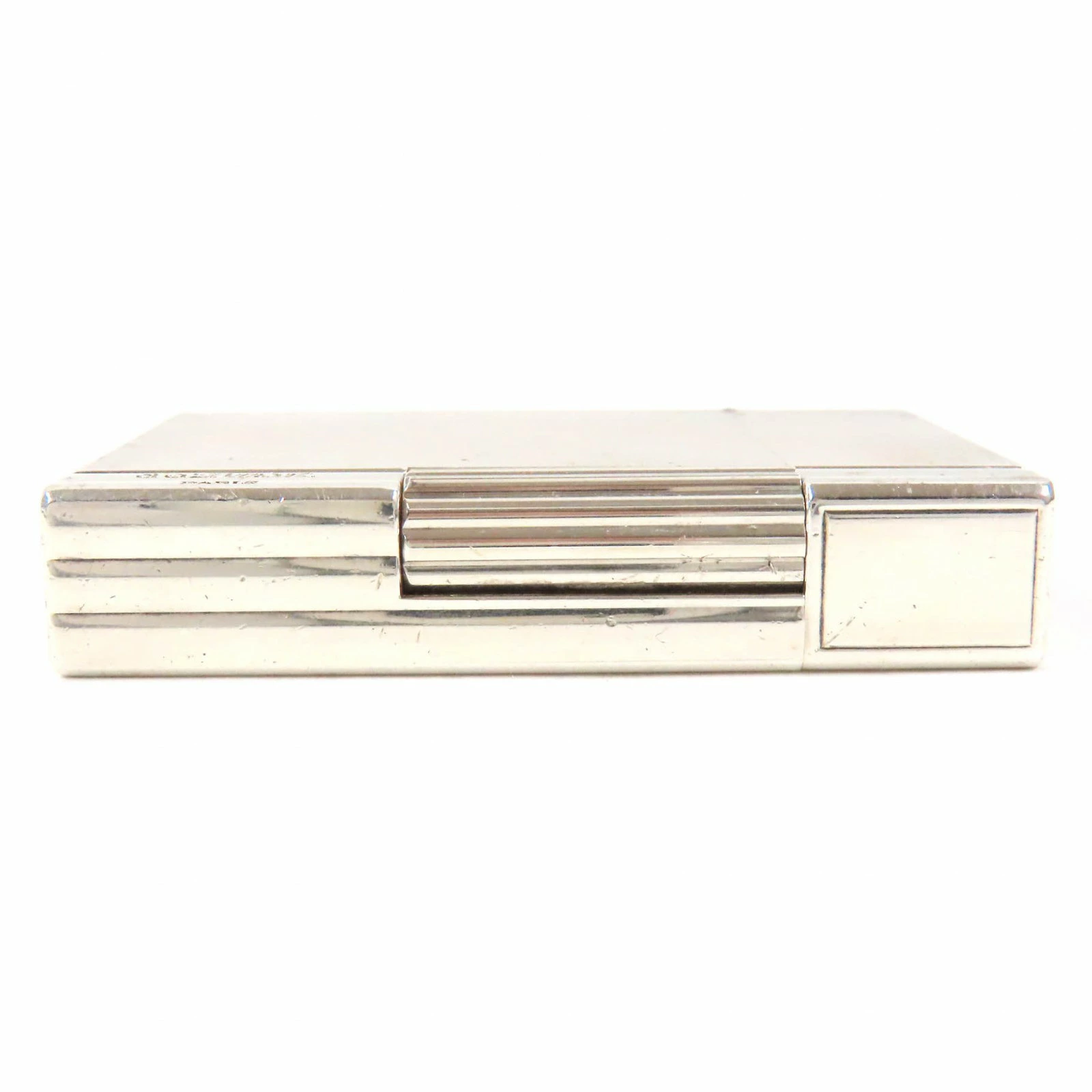 Good condition: Dupont Gatsby stripe logo engraved square roller gas lighter, silver, men's, ignition confirmed. [Pre-owned]