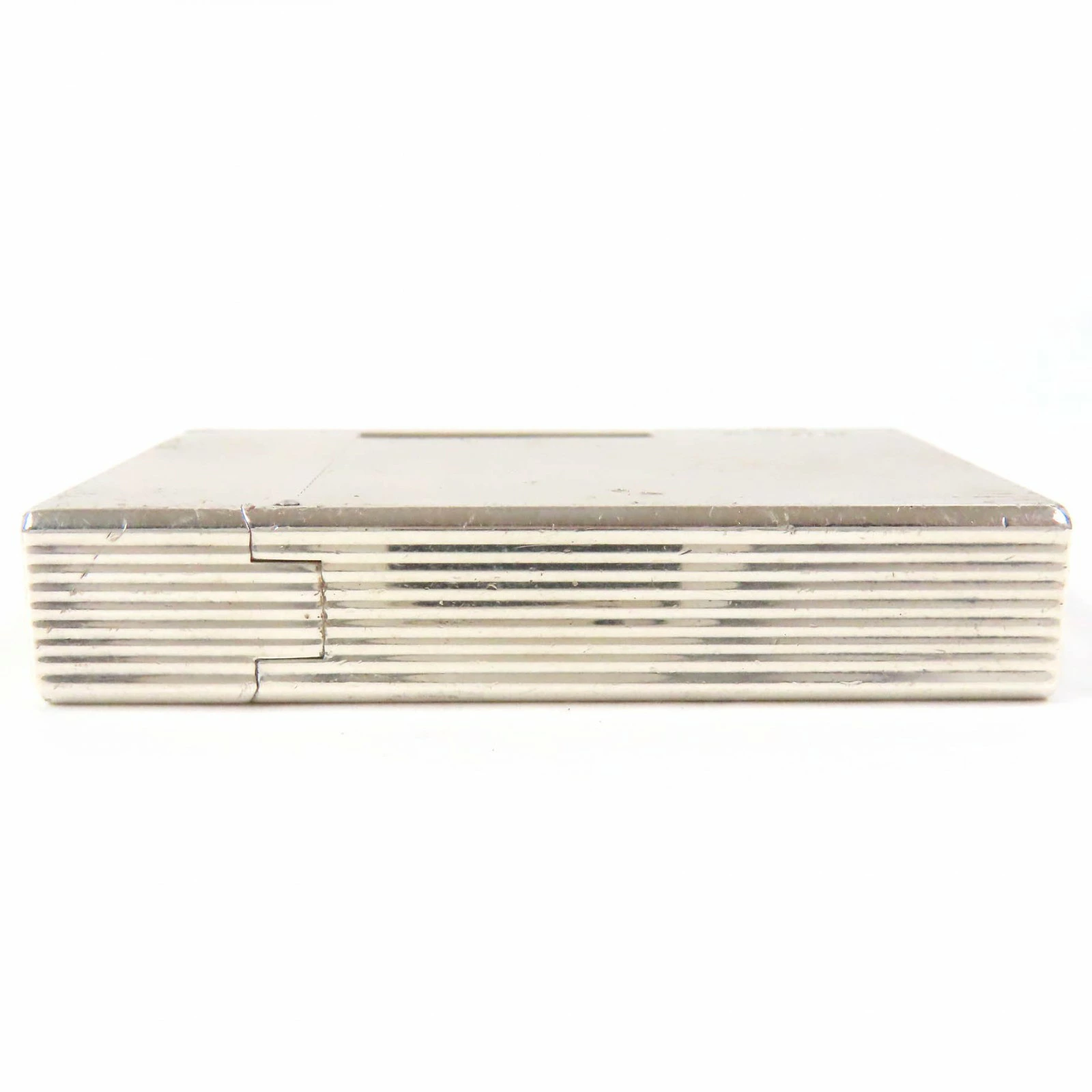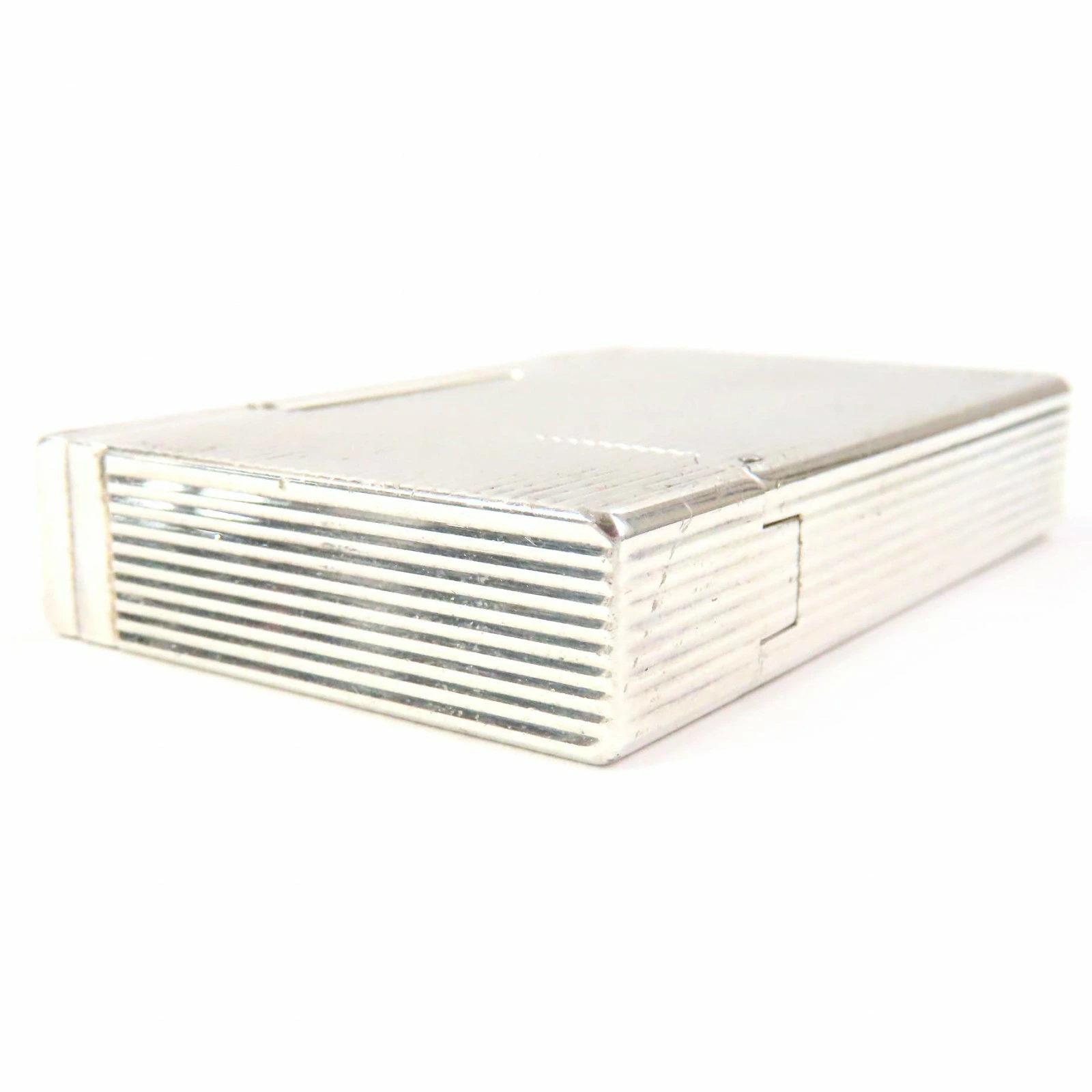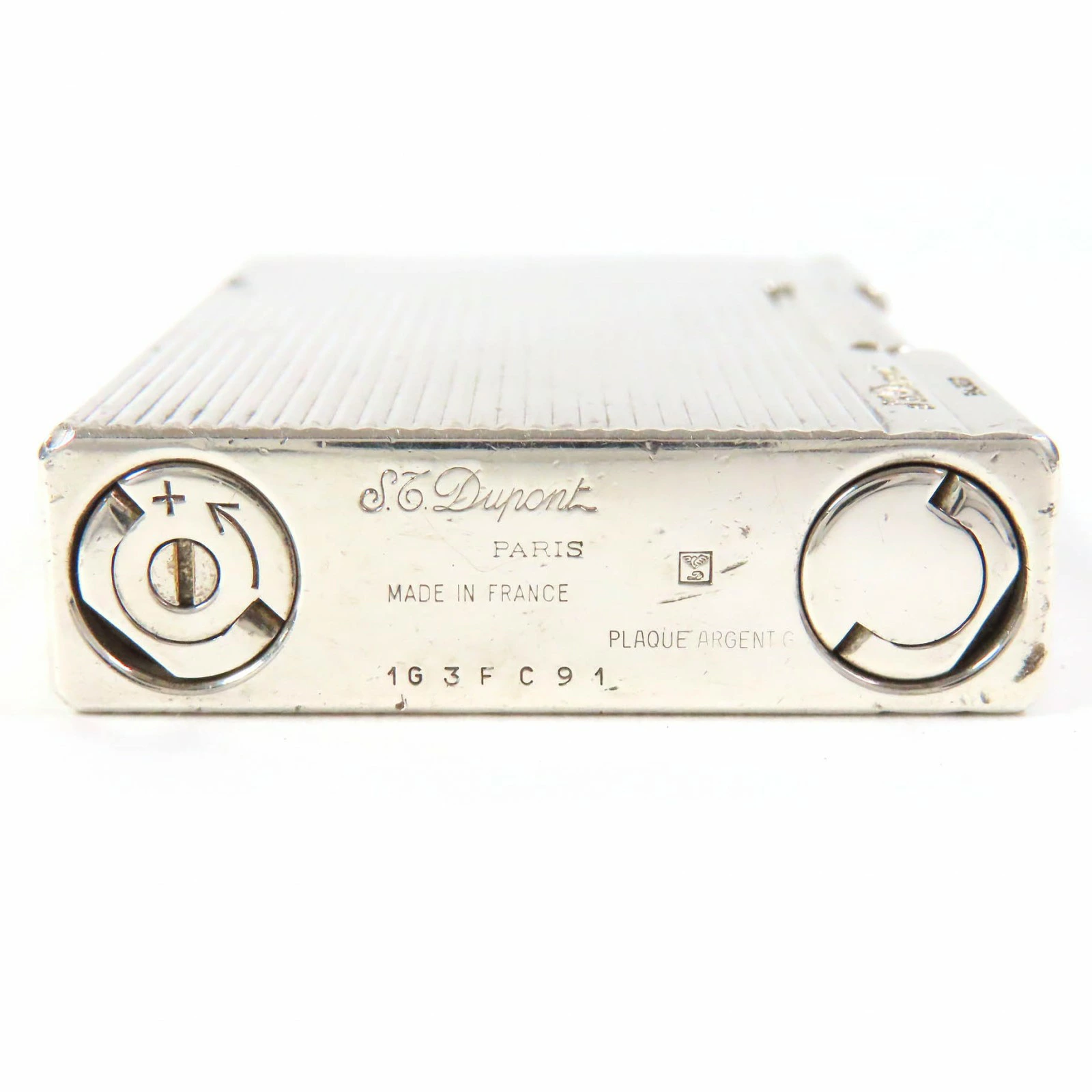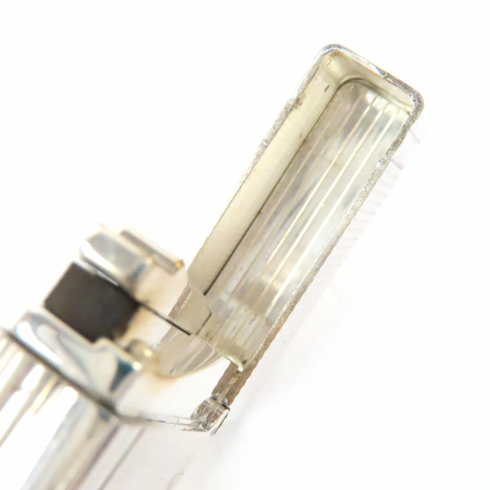 Good condition: Dupont Gatsby stripe logo engraved square roller gas lighter, silver, men's, ignition confirmed. [Pre-owned]