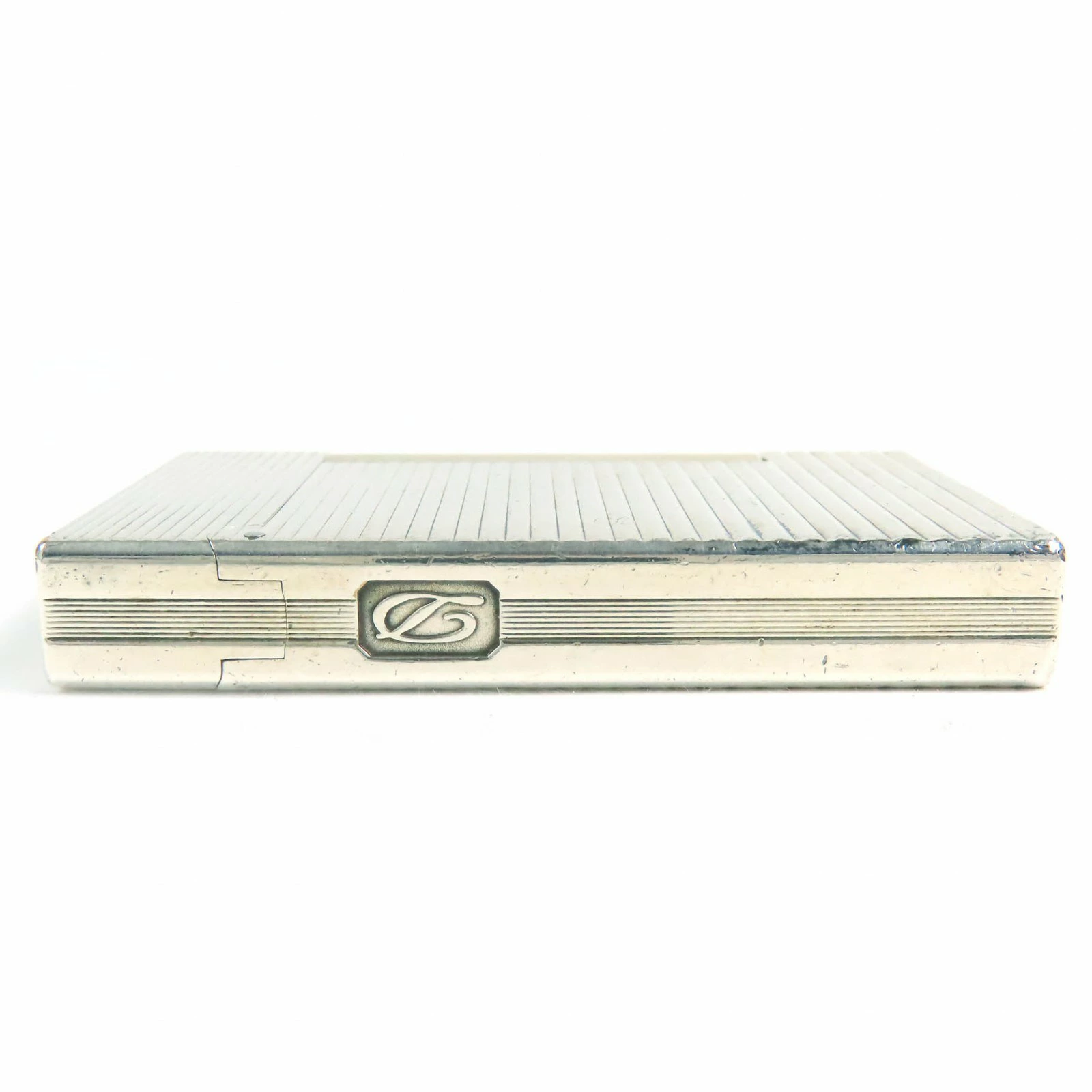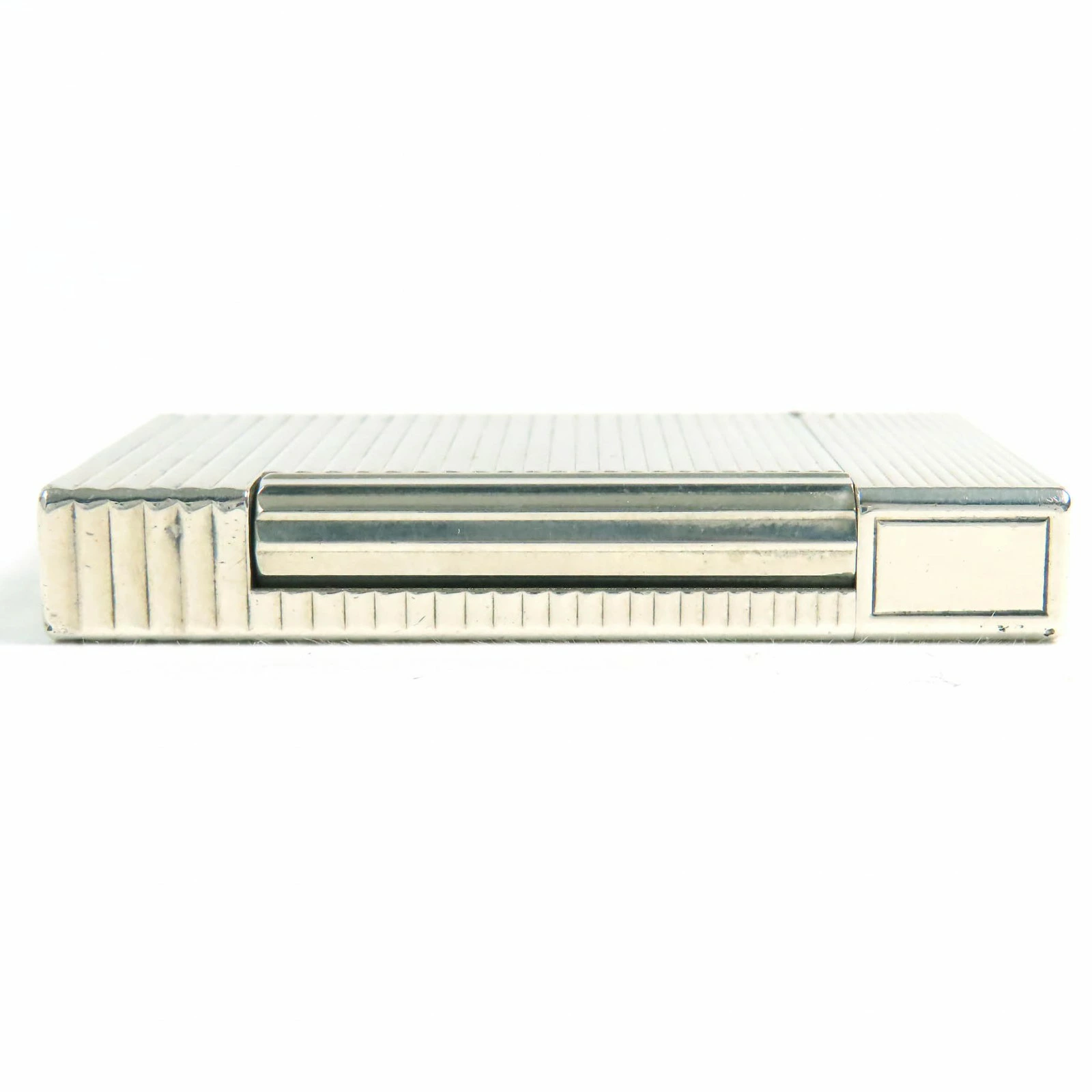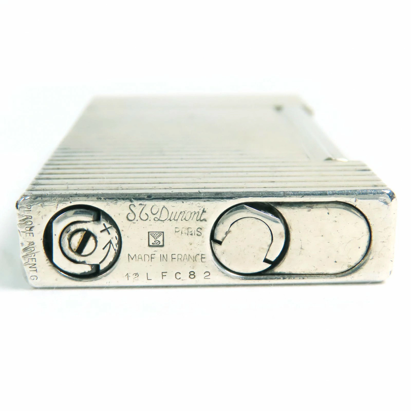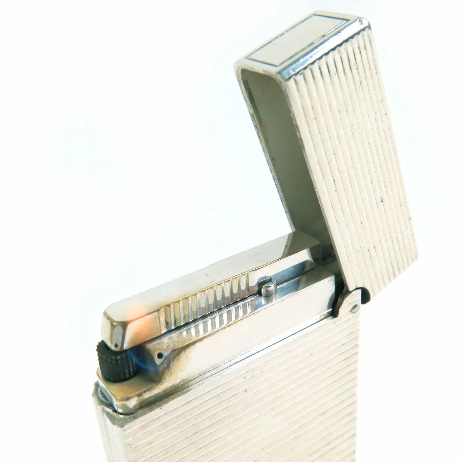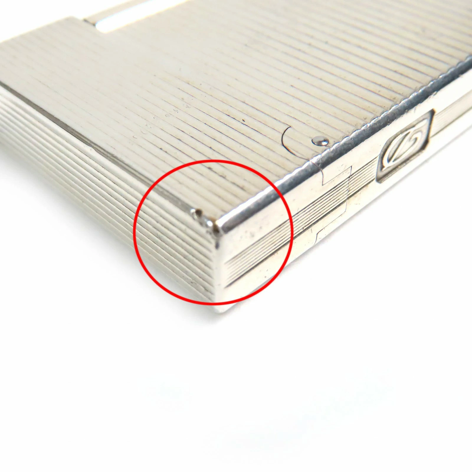 Good condition: Dupont Line D Border Square Roller Gas Lighter, Silver, Made in France, Men's, Ignition confirmed. [Pre-owned]