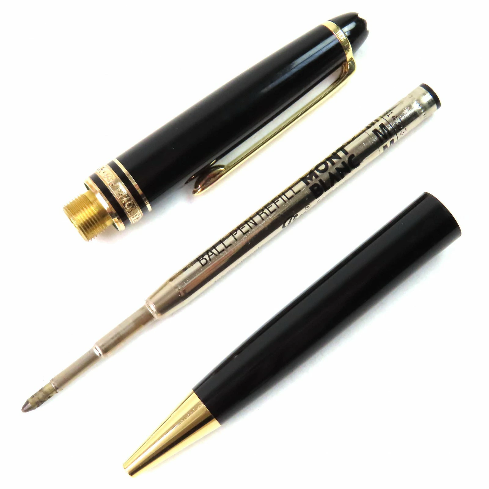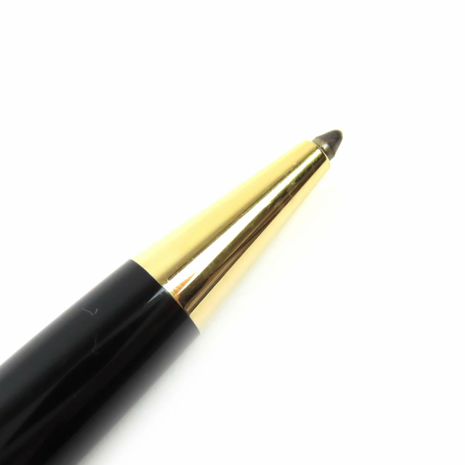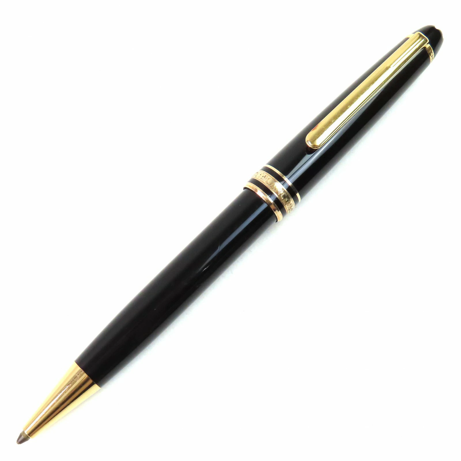 Good condition MONTBLANC Meisterstück Classic PIX White Star twist-style ballpoint pen in black and gold with case. Made in Germany. Men's. Writing performance verified. [Pre-owned]