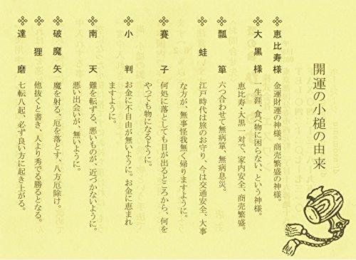 通常1-5営業日で発送:【恵比寿様】金運財運の神様。商売繁盛の神様。 【大黒様】一生涯、食べ物に困らない、という神様。恵比寿・大黒一対で、家内安全、商売繁盛。 【瓢箪】六つ合わせて無病箪、無病息災。 【蛙】江戸時代は旅のお守り、今は交通安全、大事な方が無事怪我無く帰りますように。 【賽子】何処に落としても目が出るところから、何をやっても物になるように。 【小判】お金に不自由がないように。お金に恵まれますように。 【南天】難を転ずる、悪いものが近づかないように。悪い出会いがないように。 【破魔矢】魔を射る、厄を落とす、八方厄除け。 【狸】他抜くと書き、人より秀でる勝るとなる。 【達磨】七転八起、必ず良い方に起き上がる。