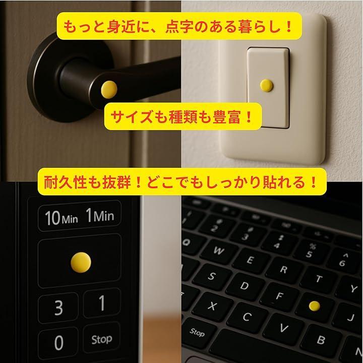 これらのシールは、リモコン、コンピューターのキーボード、電話、家電のコントロール、ボタン、スイッチなど、日常のアイテムの触覚マーキングにさまざまな用途があります。