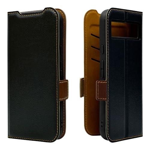 Google Pixel 8a 薄型手帳ケース サイドマグネット カード3枚 ブラック×ブラウン 7897PXL8ABSMBKB