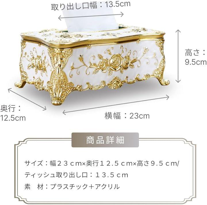 「商品詳細」サイズ:幅23cmx奥行12.5cmx高さ9.5cm/ティッシュ取り出し口13.5cm 素材:プラスチック+アクリル