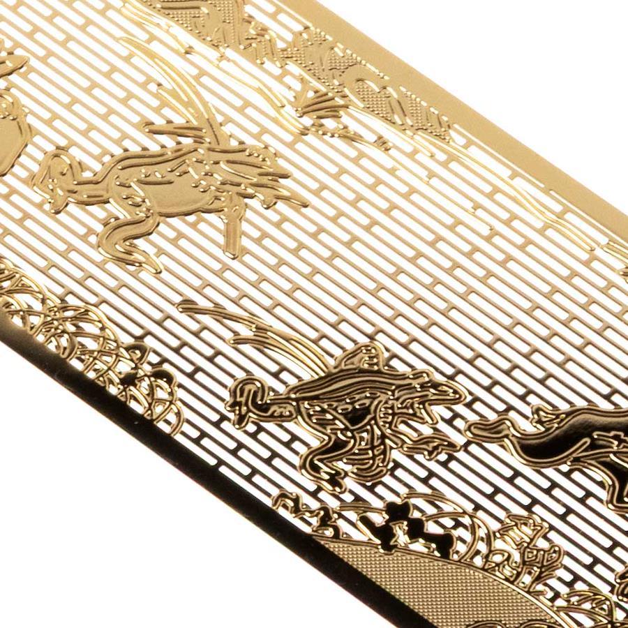 電子部品に用いられる精密加工の技術を持った、日本の企業の製品。数ミクロン単位での精密加工技術を活かし、金色のしおりを製作いたしました。